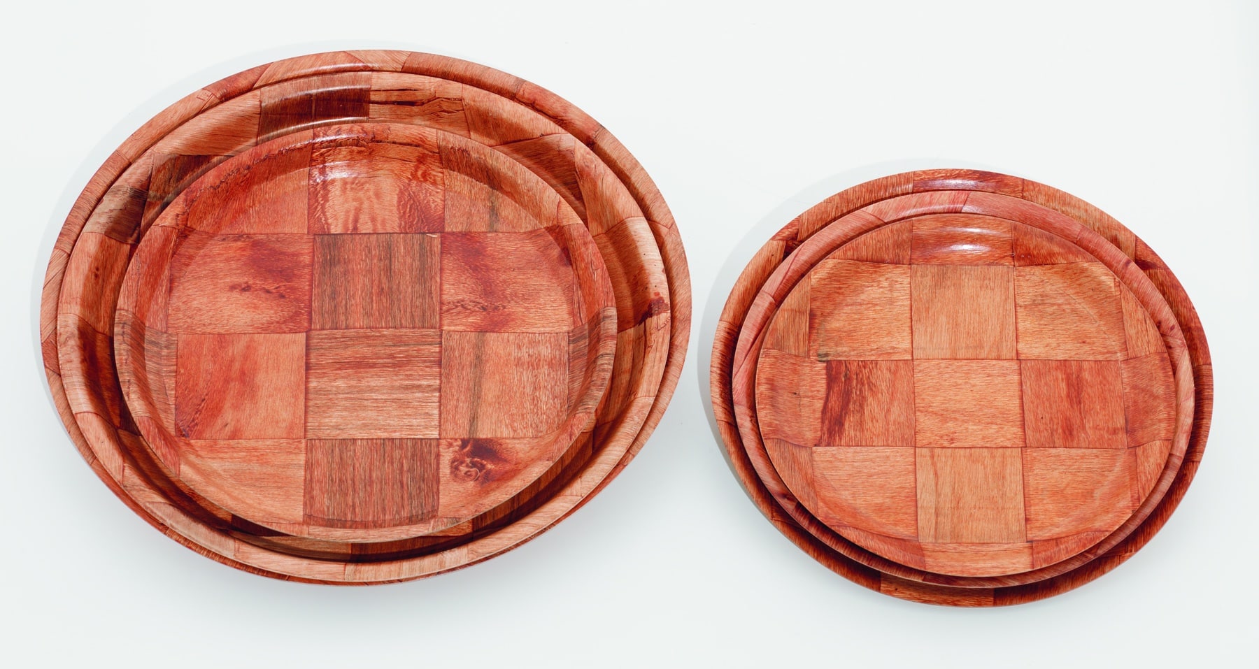 Pans are 16 gauge aluminum with textured, gold anodized finish.