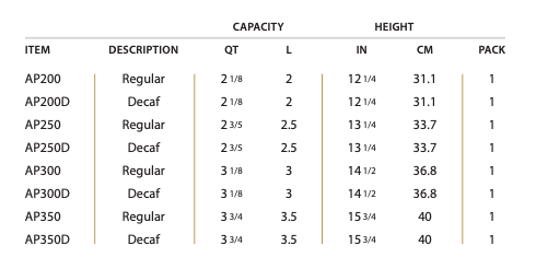 Beverage service has never been easier with these lever-pump units in four convenient sizes. Stainless steel lined interior and brushed stainless exterior. Available for regular or decaf service.