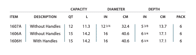 Colanders are one-piece, deep drawn. For washing and draining fruits and vegetables