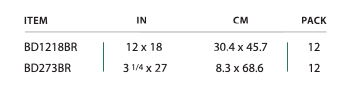 Mats are made of brown, soft rubber with a well at each end (for the BD273BR) or full size with no well (for BD1218BR).