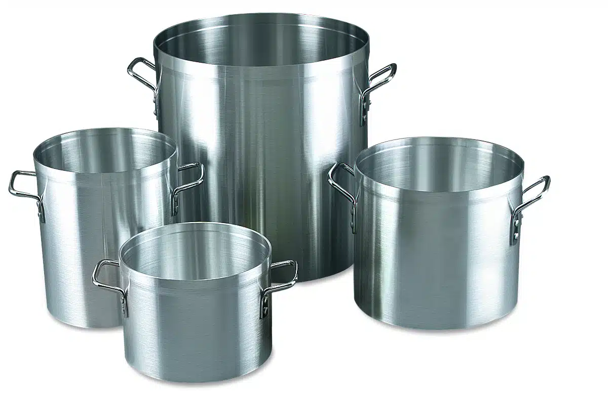 Eagleware offers a wide range of stock pots for nearly every cooking application. The 3004 aluminum alloy provides extra dent- resistance to enhance durability and promote maximum thermal efficiency. Thermal conductivity is further boosted by the pots’ lustrous satin finish interiors and exteriors. All Eagleware stock pots have extra heavy-duty plated handles and beadless rims which do not trap food particles, making for easy cleanup. All pots are available with .080” (2 mm) thick aluminum covers with formed handles.