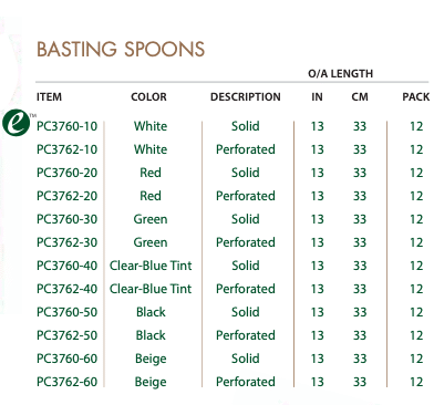 A variety of polycarbonate utensils designed for salad bar and back of the house use. NSF listed.