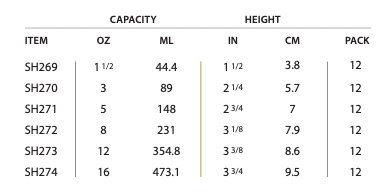 Bell shaped stainless steel with mirror finish. Six convenient sizes for serving cream or syrup.