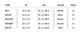 Full bib style, made of 50/50 poly-cotton blend with nylon waist ties and two pockets (except BIA1