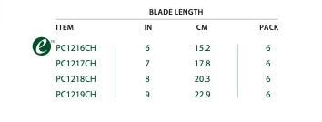 A value line of cutlery made from German stainless steel with a polypropylene handle. Each knife is individually clam shell packed for point of purchase display. NSF listed.
