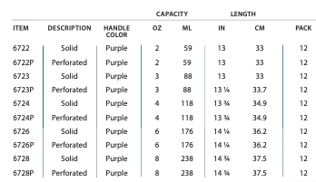 One piece food portioners with purple color handle, designated for the preparation of allergen-free foods.