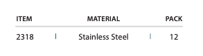 Stainless steel measuring set in U.S. standard capacities: 1/4, 1/2, 1 teaspoon and 1 tablespoon. Blister carded.