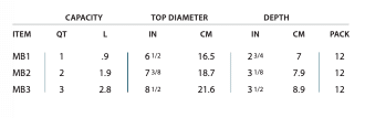 Straight-sided stainless steel. Mirror finish and rolled edges make cleanup easy.
