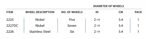 Nickel-plated steel frame for perfect parallel cutting. 4 3/4″ distance between wheels when expanded. Overall expanded length is 19 3/4″, 24 1/2″ and 29 1/4″ respectively for items 2225, 2226, and 2227DC.