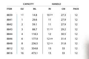 These ladles have a beautiful mirror finish. The stainless steel, one- piece construction has a reinforced, grooved handle to remain rigid for excellent serving control. They also come with color-coded plastic handles (see below) for easy capacity identification.