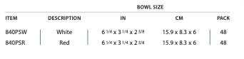 One-piece durable plastic construction. It is dishwasher safe, non-toxic, and available in red or white. Ideal for dry cereal, flour, and sugar.