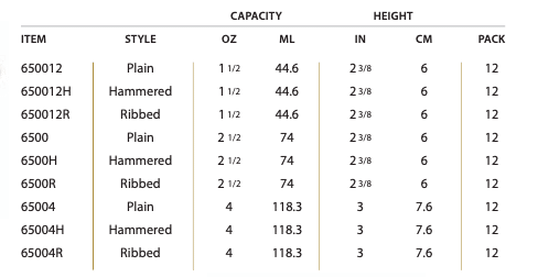 Stainless steel with a mirror, hammered, or ribbed finish outside and satin finish inside. Plain rolled edge ideal for sauces, butter or condiments.