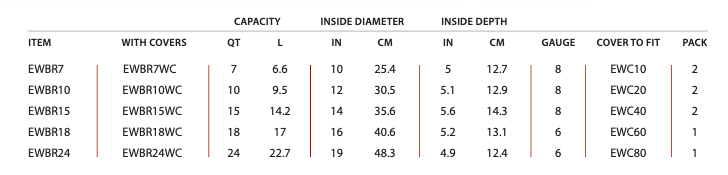 The Eagleware standard weight braziers are perfect for browning meats, simmering or extended cooking times. Available in five nesting sizes and with lids.