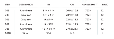 Weights are cast aluminum or iron, with a ribbed flat bottom and a wooden handle that will not heat up. Keeps edges of steaks from curling during cooking